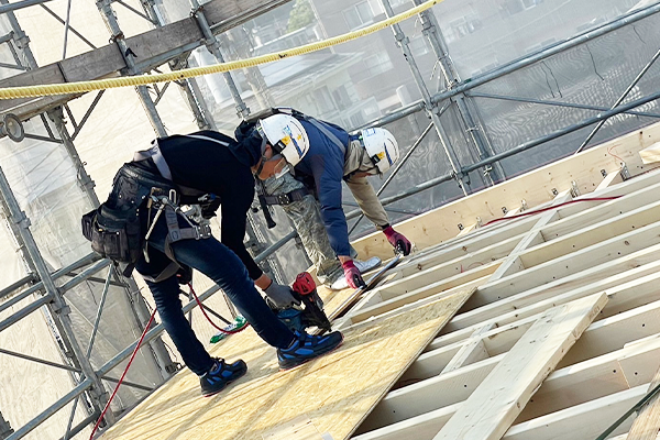 木造住宅の建物内部の下地を作り上げていく工事をいいます。窓となる場所に台を製作したり、扉となる場所に建具を取り付ける枠を製作するなど、完成する建物をイメージしながら工事を行います。
